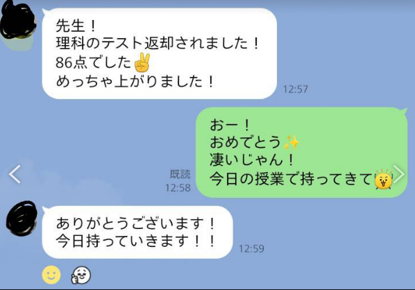 お子様の様子や進捗について、必要に応じてLINEでご報告・ご相談を行っています。